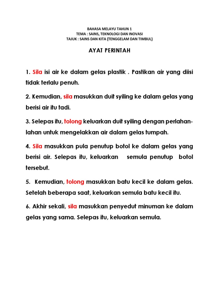 Latihan Ayat Perintah Tahun 1