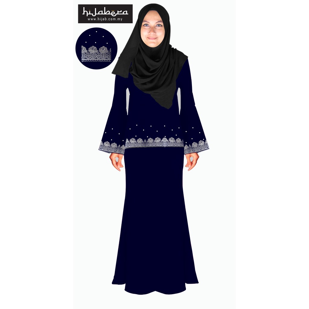 Baju Kurung Moden Lace Style Navy Blue Shopee Malaysia