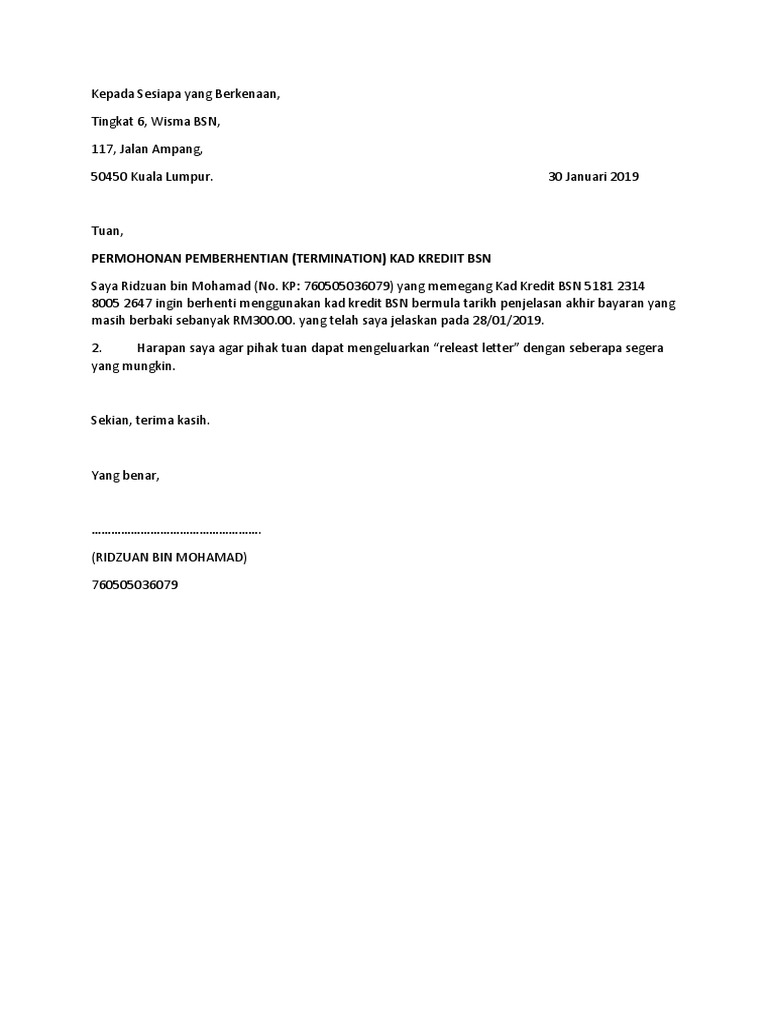 Contoh Surat Kepada Sesiapa Yang Berkenaan