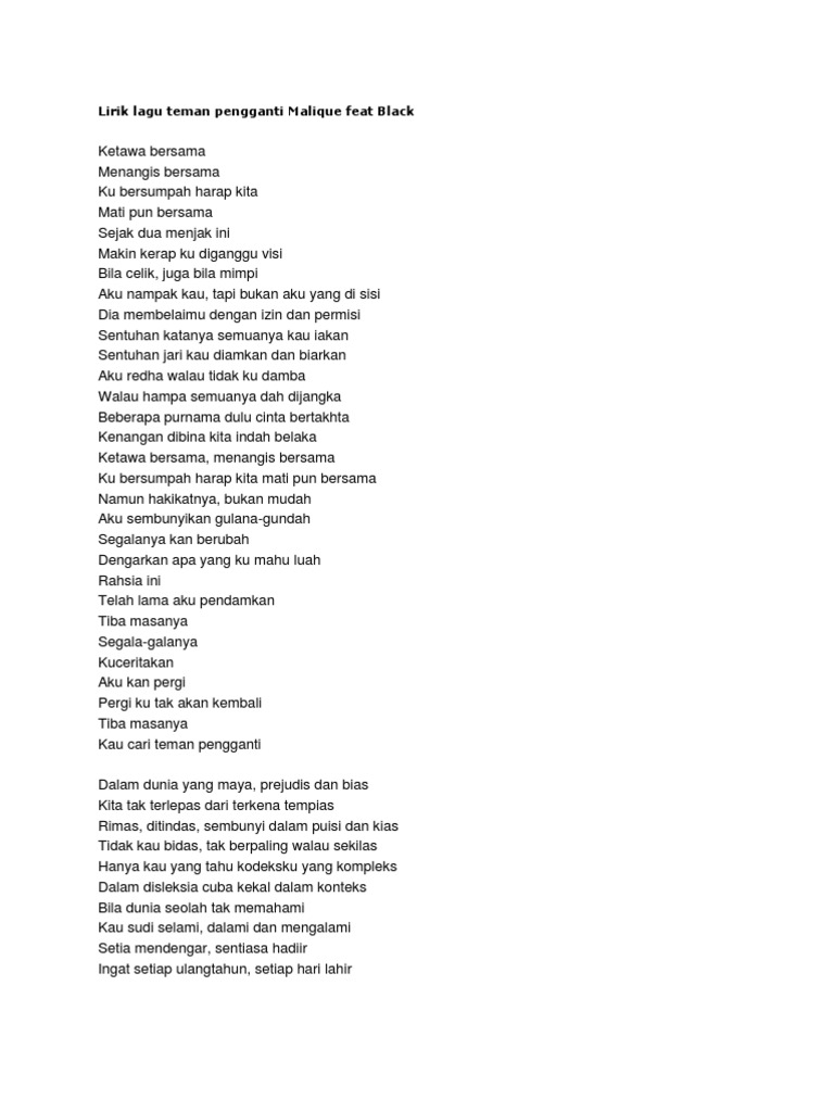 Black Malique Teman Pengganti Lyrics Genius Lyrics