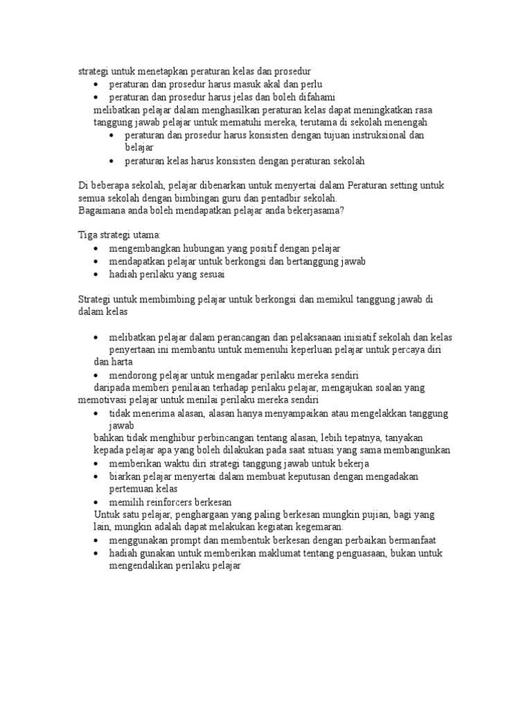 Strategi Untuk Menetapkan Peraturan Kelas Dan Prosedur