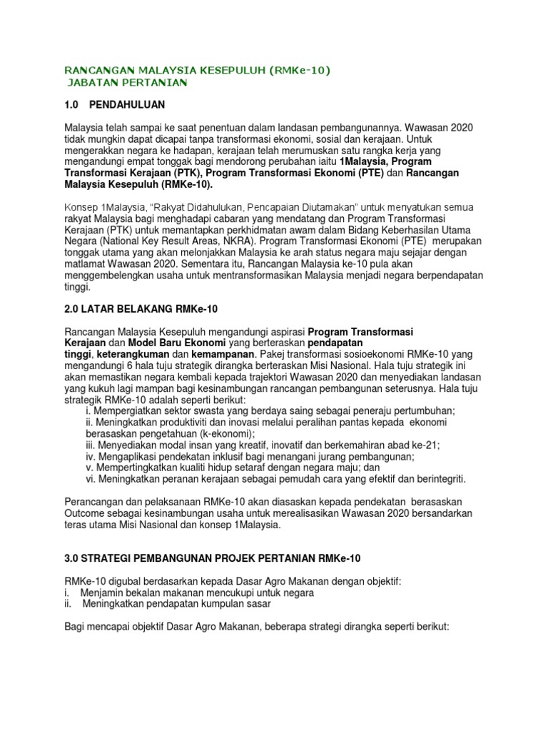 Rancangan Malaysia Ke 10 Transformasi Ke Arah Wawasan 2020