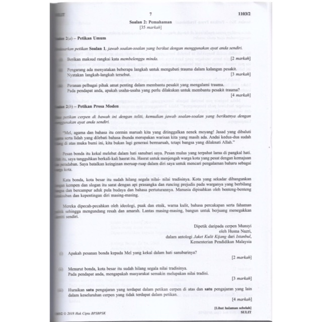 Koleksi Soalan Percubaan Bahasa Melayu Spm 2019 2018